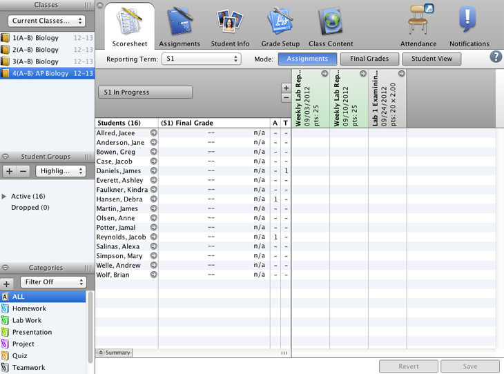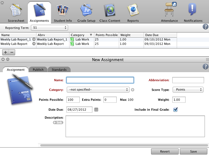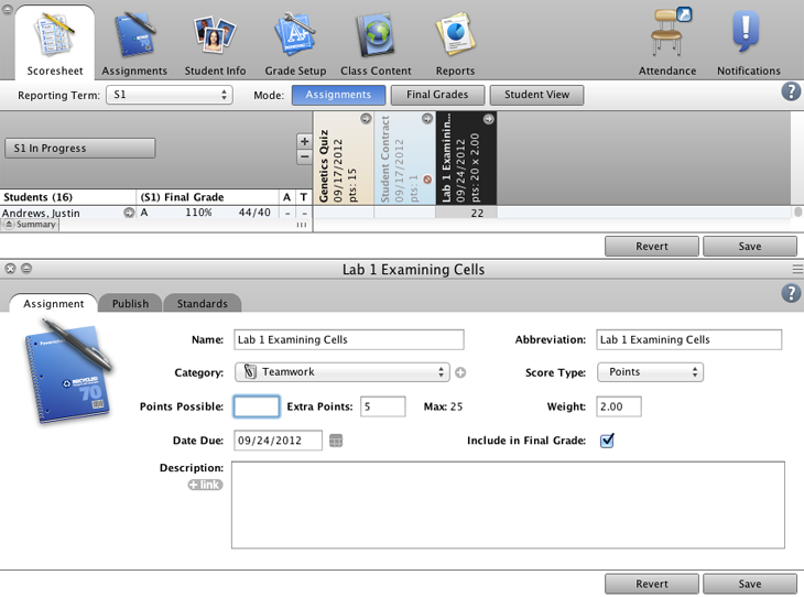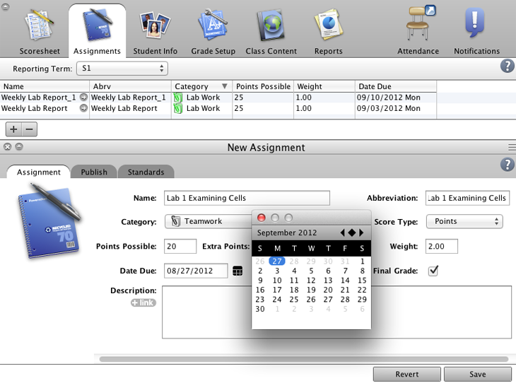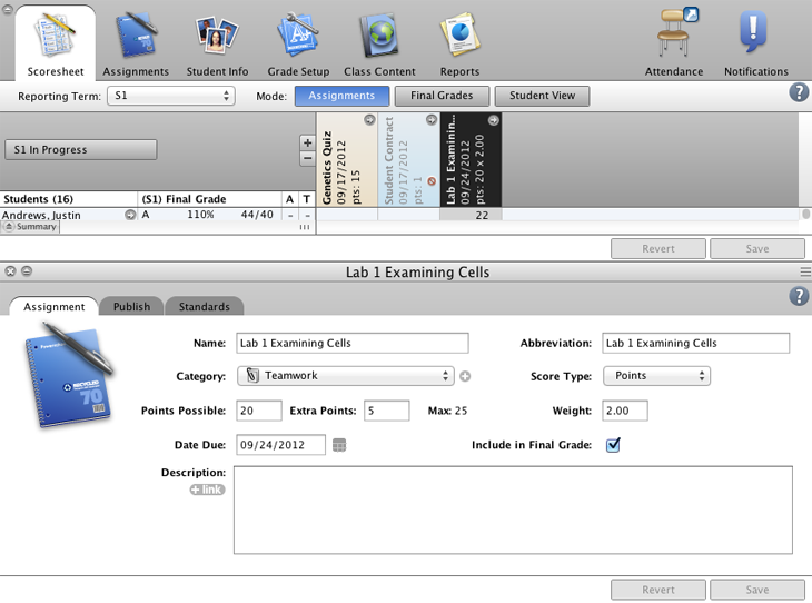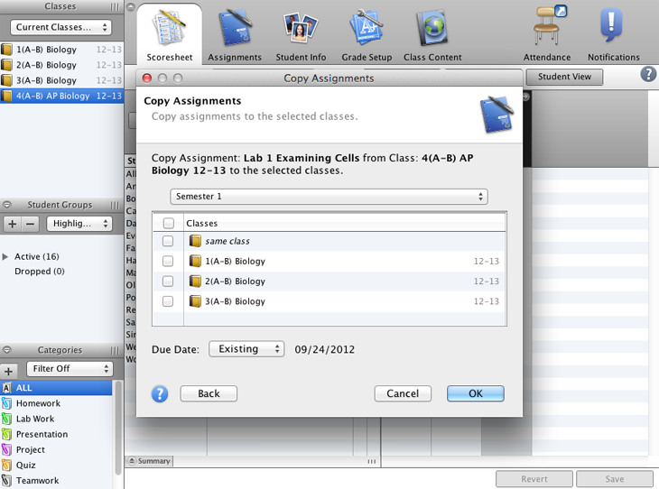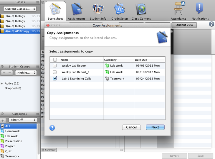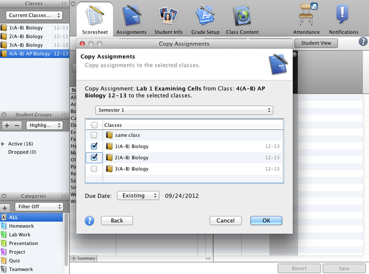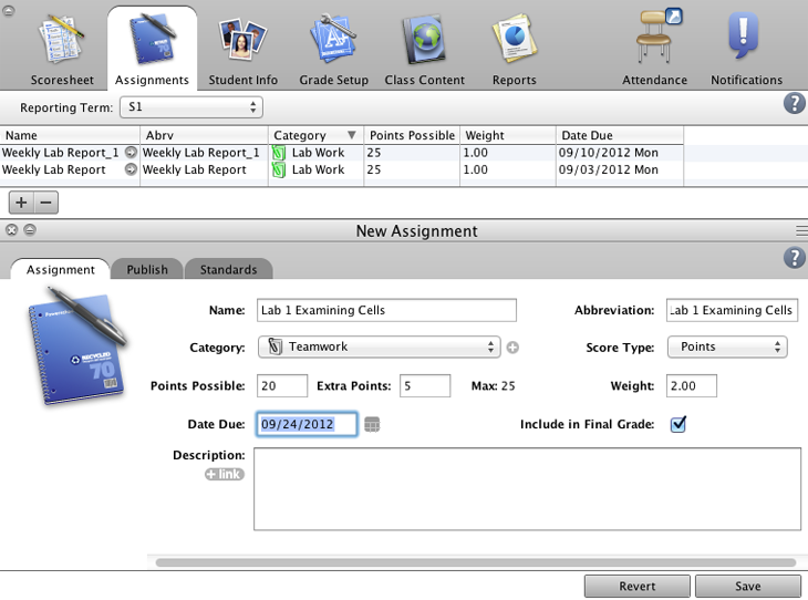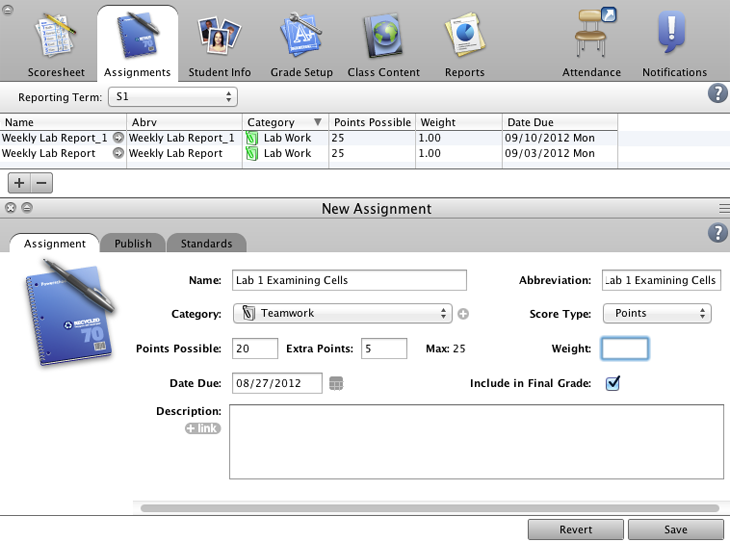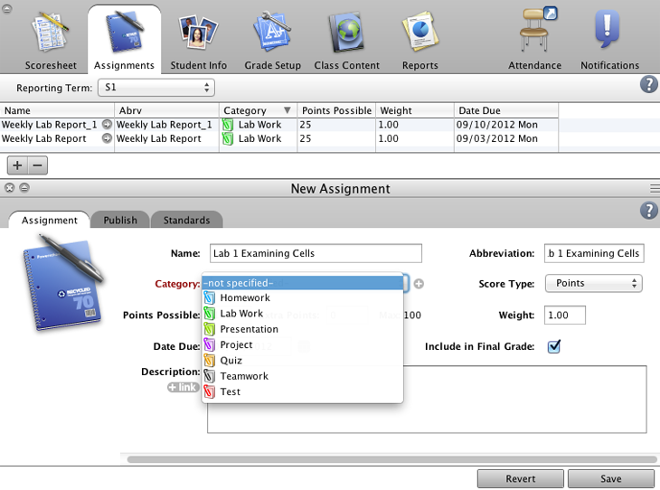 Create a new assignment category to use when you observe and grade your students’ performance on a group lab experiment.